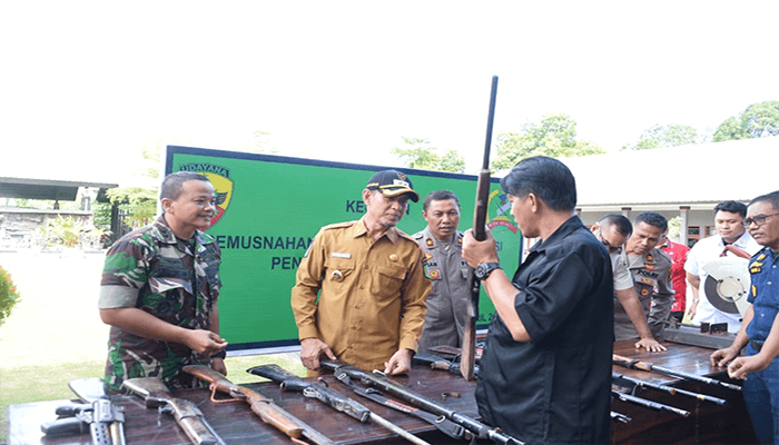 Hal tersebut disampaikan Wabup saat menghadiri kegiatan pemusnahan 10 pucuk senjata api rakitan hasil operasi penggalangan teritorial yang dilaksanakan Kodim 1608/Bima di Lapangan Makodim 1608/Bima, Senin (20/4/2026).